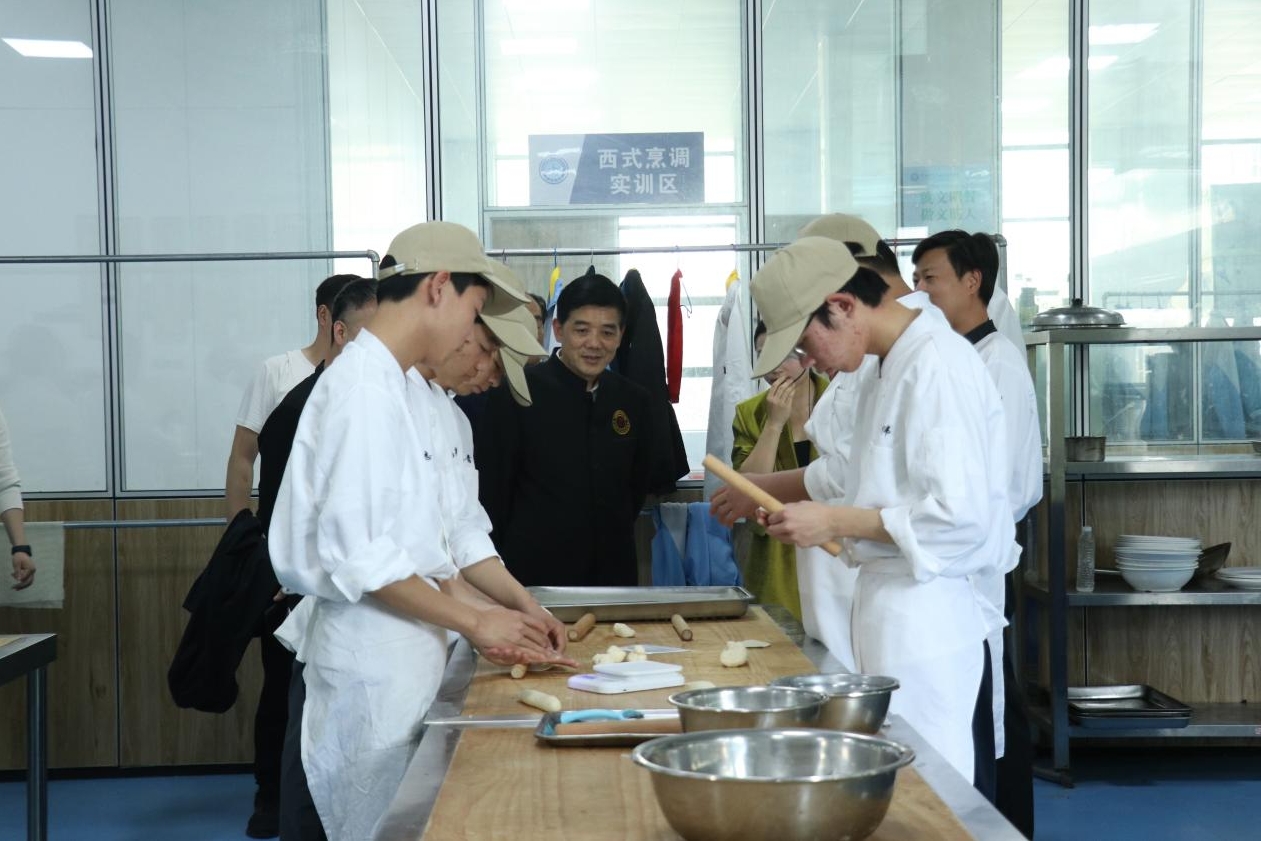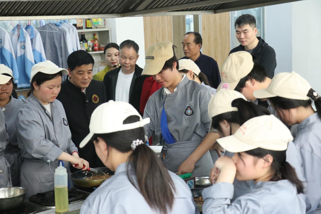 余局长高度肯定学校对地方职教的贡献,强调技能人才是产业升级的核心动力, 近年来,平桥区人社局始终将技能人才队伍建设作为服务产业发展、促进就业创业的重要抓手。我们欣喜地看到,信阳航空技师学院与餐饮协会、行业大师紧密合作,构建了“教学-实训-产业”全链条培养体系,为区域餐饮行业奠定基础。这些成绩的取得,离不开校企双方的深度协同,更离不开行业大师的倾囊相授,期待学校持续深化产教融合,打造“信阳菜”职教品牌,为“技能信阳”建设注入新活力。