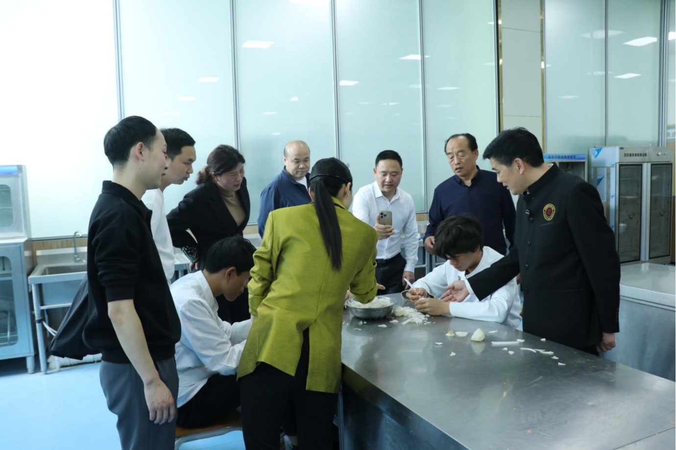 孙校长对李宏群一行的到来表示欢迎,并介绍了学校发展历史、办学特色、师资建设及社会服务情况。她表示,学校将积极发挥工匠人才示范引领作用,集合优势专业师资力量,开展系统性培训课程体系构建和职业技能提升培训,培育更多优质烹饪工匠人才,突出"理论+实践+创新"模式为服务地方经济社会发展贡献力量。