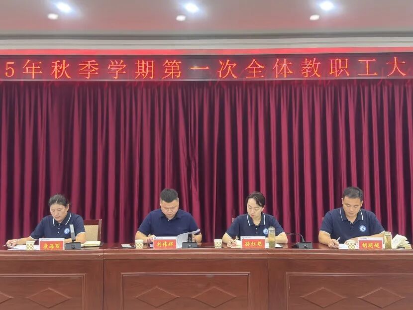 8月29日下午14点30分,在孙红娟校长的主持下召开本次全体教师大会,本次大会教职工齐聚一堂,回顾过往成效,明确发展方向,凝聚育人合力,共绘育人新蓝图。