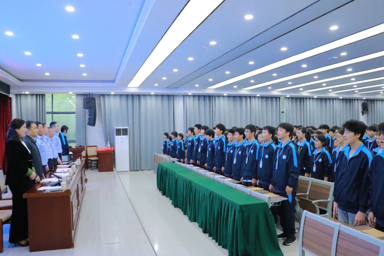 伴随着雄壮激昂的国歌声,报告会正式启幕。全体与会人员肃立,国歌的旋律不仅唤醒了师生心中的爱国情怀,更为即将展开的法治教育铺垫了庄重而热烈的氛围。