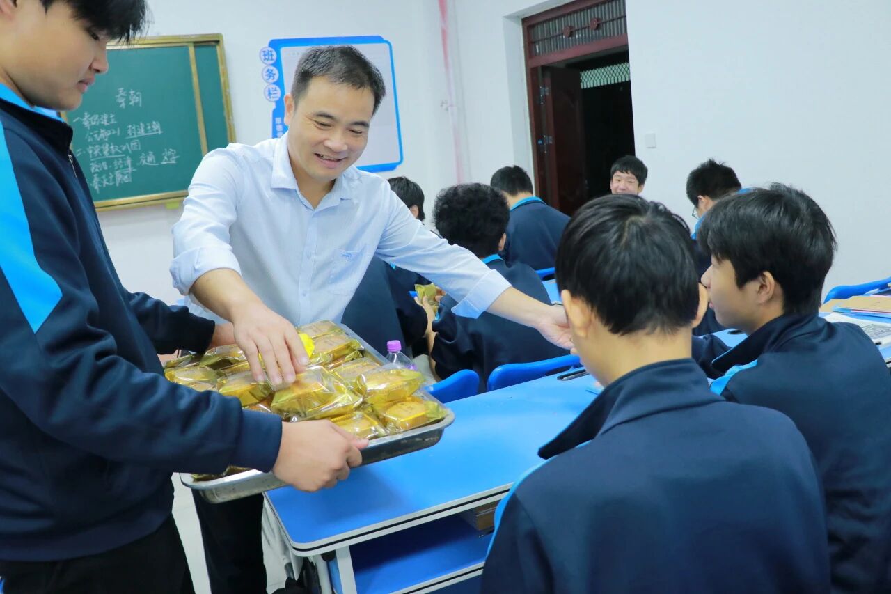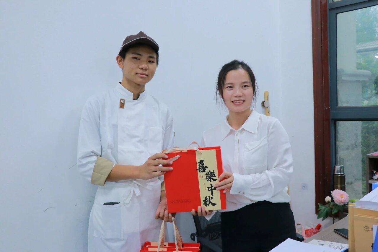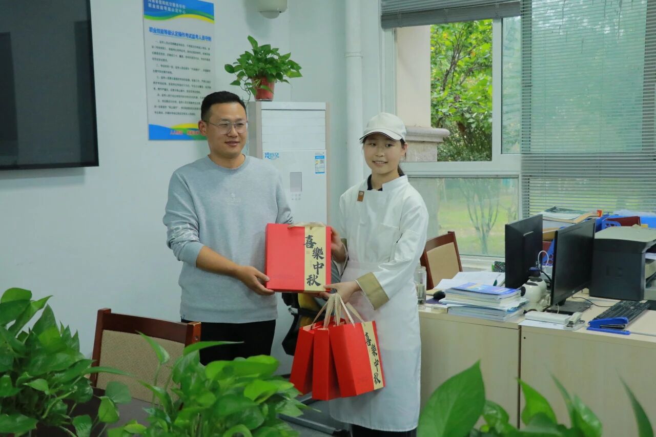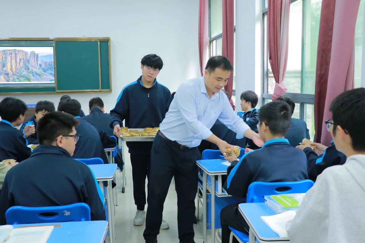 大赛结束后,学生们将亲手制作的月饼赠送给老师,表达感激之情。