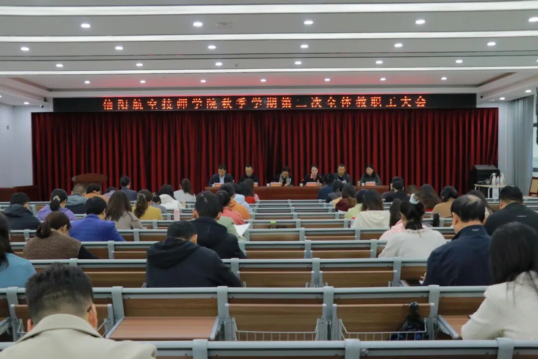 为进一步统一思想、明确方向,推动学校教育教学与管理服务工作提质增效,10月17日下午,信阳航空技师学院在教学楼一楼大会议室召开全体教职工大会。学校校务委员出席会议,全体教师参加会议,会议由常务副校长孙红娟主持。